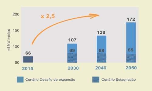 The report points out that, even in a scenario with a significant rise in demand for electricity in the 2050 time frame, the available hydropower potential inventoried will remain relatively small (52 GW), so the HPPs’ installed capacity share in the electricity mix may drop from 64% in 2015 to 31% in 2050, just as the share of renewable sources rises from 15% to 45%. As biomass, wind and solar have low dispatchability, this may lead to an expansion in power complementation by more than 60 GW in that time frame.