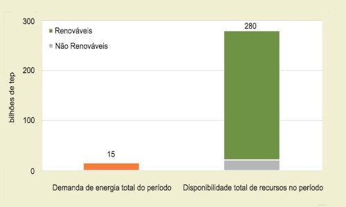 According to the NEP report, Brazil’s energy potential will reach nearly 280 billion toe (ton of oil equivalent) by 2050. This figure represents a potential of 21.5 billion toe in non-renewable resources plus an annual potential of 7.4 billion toe in renewable resources over 35 years. However, the demand for energy may grow from 300 million toe to about a mere 600 million toe p.a. Over 35 years, this may reach a total accumulated energy demand of just under 15 billion toe, which illustrates the enormous disparity between Brazil’s resource potential and its estimated energy demand (figure 1).